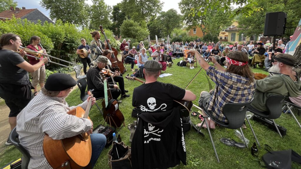 Der Verband hat ~300 Mitglieder, darunter vor allem Musiker:innen und Bands, Kulturvereine, Veranstalter:innen und Folkfreunde. Damit repräsentieren wir eine mittlere vierstellige Menge an Menschen.